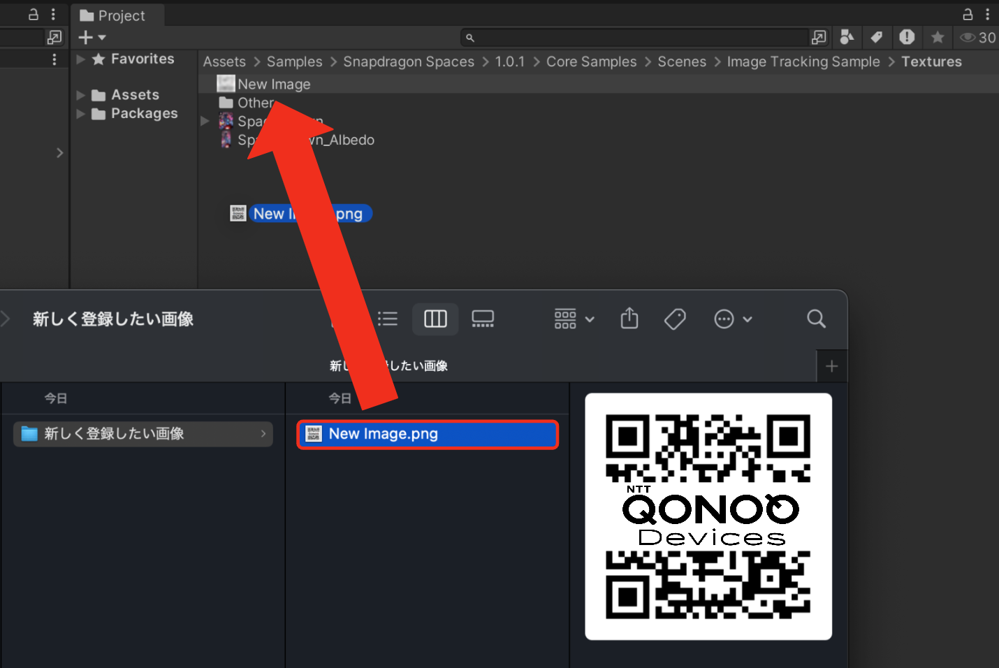 Projectタブ内の任意のフォルダに、画像トラッキングに使用したい画像をインポートします。