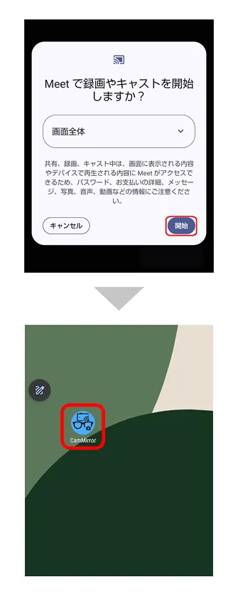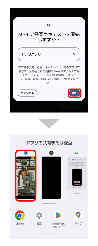 [アプリの共有または録画]で本アプリを選択